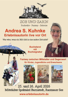 Ich bin Autorin der Fantasy-Trilogie ZOE UND ZARIN und Live-Erlebnisautorin - und ich bringe meine Geschichten nicht nur aufs Papier sondern auch auf die Bühne. Meine Leidenschaft ist es, Menschen in andere Welten mitzunehmen.